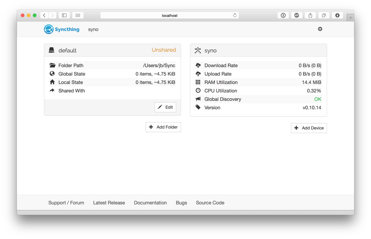 资源下完了接下来就是同步。开源的Syncthing更加适合用于服务器与服务器之间备份,它支持像github一样基于版本的更新及备份。但是它的速度并没有Resilio Sync快。并且它并没有苹果客户端。它拥有官方包以及社区封装的安装包。